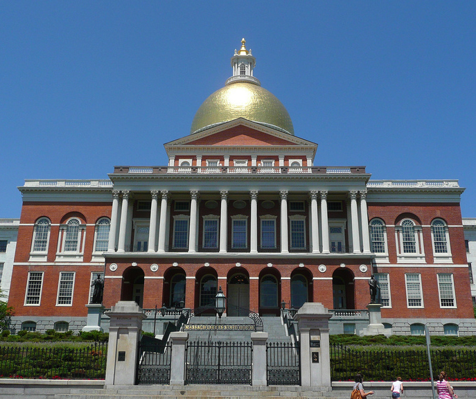 Massachusetts state Capitol building in Boston; photo by S. L. on Flickr (noncommercial use permitted with attribution / share alike).