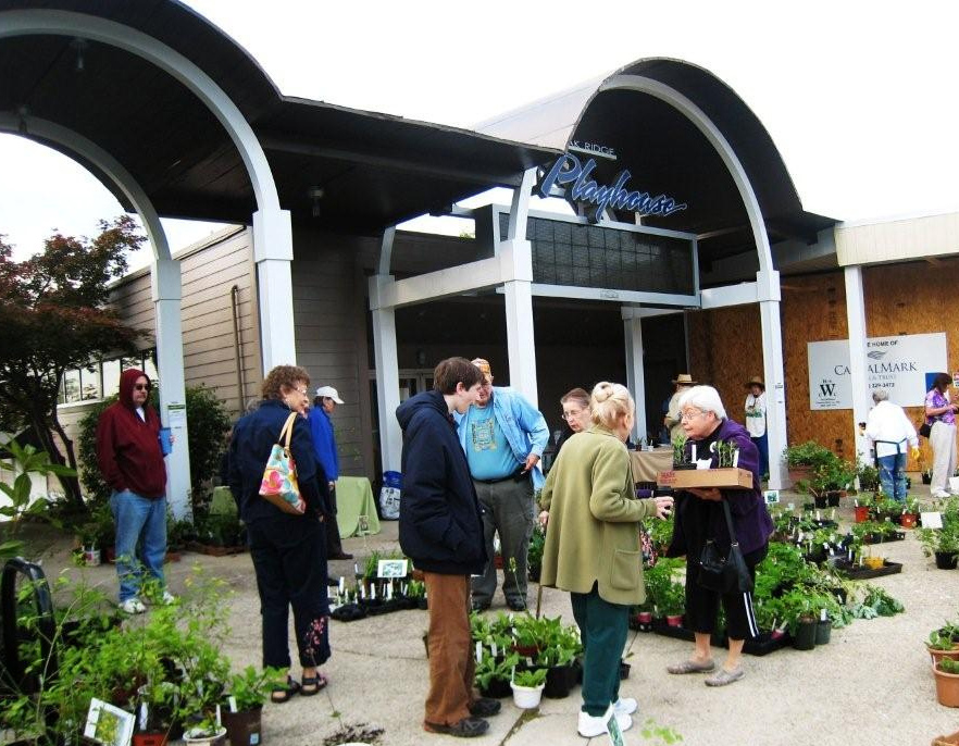 Oak Ridge Playhouse plant sale being held outside entrance to the community theater. Photo by Carol Norquist, NGC Chairman / Flickr (use permitted with attribution/no derivative works).