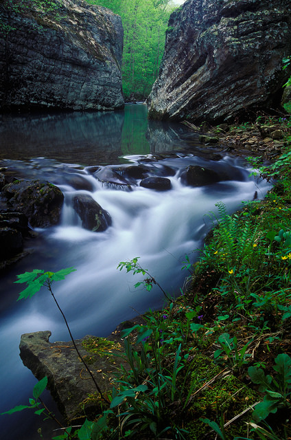 Ozark Highlands Trail in Arkansas (the section which runs along Hurricane Creek); photo by Beau Rogers on Flickr (noncommercial use permitted with attribution).