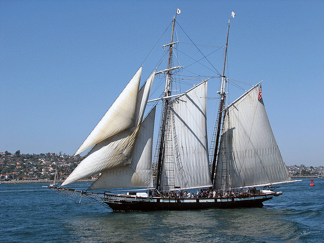 The tall ship Californian (port side); photo by avisastry on Flickr (noncommercial use permitted with attribution / no derivative works).