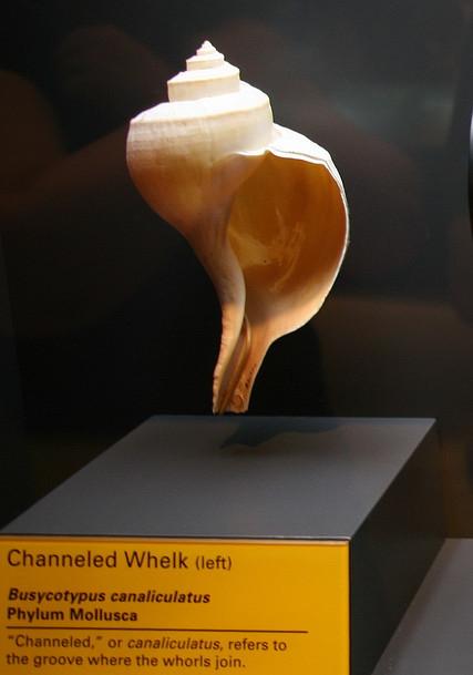 Channeled whelk shell; photo by photoholic1 on Flickr (noncommercial use permitted with attribution / no derivative works).