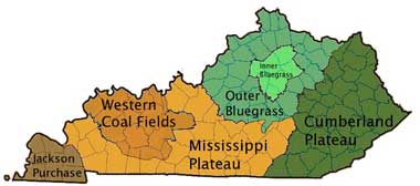 The Bluegrass Region, which extends into southern Ohio, is characterized by underlying fossiliferous limestone, dolostone, and shale of the Ordovician geological age. Hills are generally rolling, and the soil is highly fertile for growing pasture. The Bluegrass Region is famous for its horse farms and of course the Kentucky Derby (the thoroughbred is the official state horse of Kentucky.