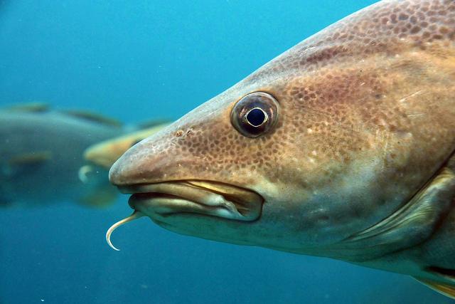 Atlantic cod; photo by Joachim S. Müller on Flickr (noncommercial use permitted with attribution / share alike).