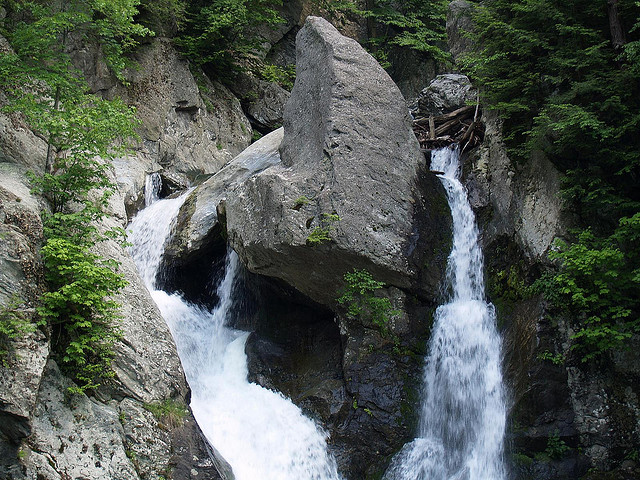 Bash Bish Falls in Great Barrington, Massachusetts; photo by dapawprint on Flickr (noncommercial use permitted with attribution / no derivative works).