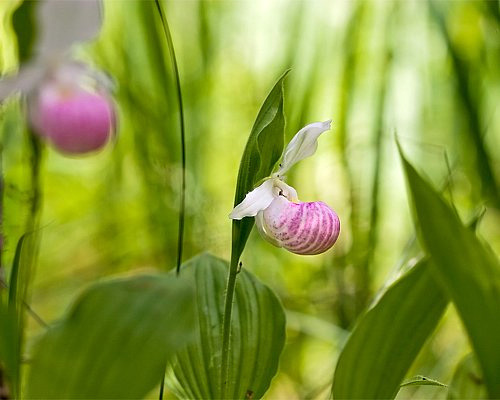 Lady slippers (also called moccasin flower) can live up to 50 years but develop slowly, taking up to 16 years to produce their first flower. Since 1925 this rare wildflower has been protected by Minnesota state law (it is illegal to pick the flowers or to uproot or unearth the plants). Lady slippers are listed as threatened and endangered by many states.