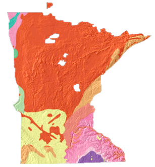 Minnesota geology and topography map courtesy of USGS: A Tapestry of Time & Terrain.