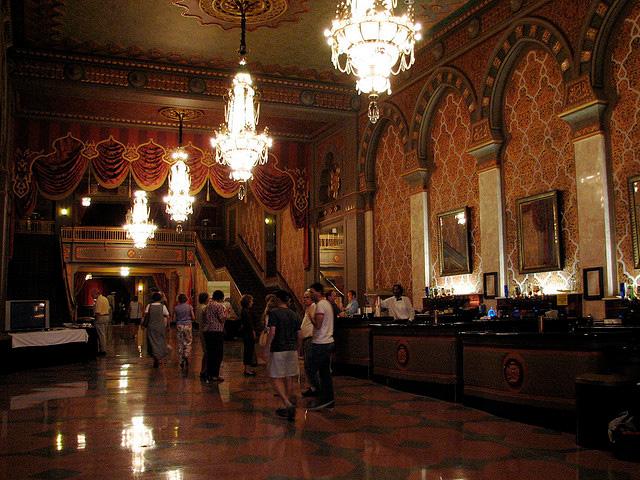 Billed as "Knoxville's Grand Entertainment Palace," the interior of Tennessee Theatre was designed in the Spanish-Moorish style (although the design contains elements from all parts of the world: Czechoslovakian crystals in French-style chandeliers, Italian terrazzo flooring in the Grand Lobby, and Oriental influences in the carpet and drapery patterns. The theater also features a beautiful Wurlitzer organ.