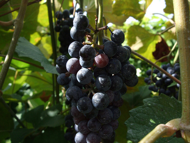 Norton grapes; photo by Lindsey the Great on Flickr (noncommercial use permitted with attribution / no derivative works).