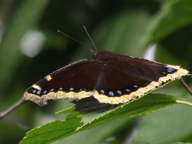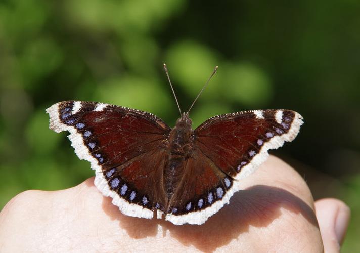 Mourning cloak butterfly; photo by Superior National Forest on Flickr (use permitted with attribution).