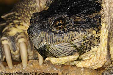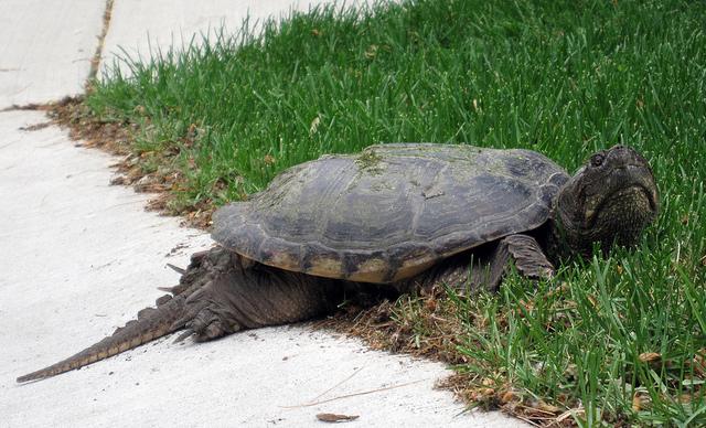 Chelydra serpentina (snapping turtle); photo by aposematic herpetologist on Flickr (noncommercial use permitted with attribution).