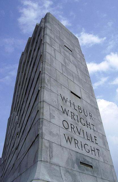 Wright Brothers memorial in Kitty Hawk, NC is constructed of gray granite from Mount Airy, North Carolina; photo by Keith Lyndaker-Schlabach on Flickr (noncommercial use permitted with attribution / no derivative works).