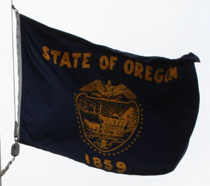 Oregon flag the only U.S. state flag that displays different images on front and back. Photo by Holly Hayes / Flickr (noncommercial use permitted with attribution).
