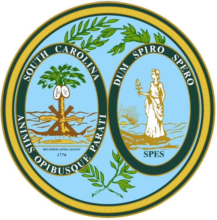 South Carolina has two state mottos that can be seen on the state seal. The seal displays two ovals linked by branches of the palmetto tree. South Carolina's two Latin mottos surround the two ovals. On the left is "Animis Opibusque Parati" (Prepared in Mind and Resources). On the right is the more well-known motto "Dum Spiro Spero" (While I Breathe I Hope).