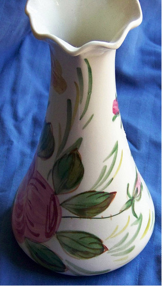 Blue Ridge hand-painted porcelain vase; photo © Eileen C / Crochet Attic on Flickr (all rights reserved (used by permission).