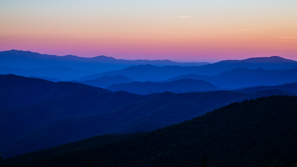 Sunset from Clingmans Dome in the Great Smoky Mountains National Park Sevier, Tennessee. Photo by John Getchel / Flickr (noncommercial use permitted with attribution).