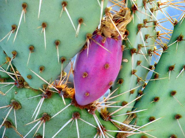 Found in the deserts of the American southwest, the fruits of most prickly pear cacti are edible, and have been a source of food to native Americans for thousands of years. Cacti in general (and the fruits in particular) are still staple foods for some residents of Mexico and Latin America and the prickly pear cactus is raised commercially. The fruit is sold under the name Tuna - the branches or pads are eaten as a vegetable (called nopalito or nopales).