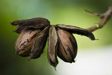 Ripe pecans on the tree; photo by Corey Leopold on Flickr (use permitted with attribution).