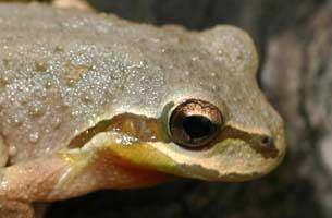 Photo of Pacific chorus frog © Michael Benard: Natural History of the Pacific tree frog - Pseudacris regilla (used by permission).