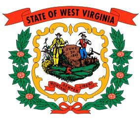 The official description for the state flag of West Virginia: "The proportions of the flag of the State of West Virginia shall be the same as those of the United States ensign; the field shall be pure white, upon the center of which shall be emblazoned in proper colors, the coat-of arms of the State of West Virginia upon which appears the date of the admission of the State into the Union, also with the motto, 'Montani Semper Liberi' (Mountaineers Are Always Free). Above the coat-of-arms of the State of West Virginia there shall be a ribbon lettered, 'State of West Virginia,' and arranged appropriately around the lower part of the coat-of-arms of the State of West Virginia a wreath of Rhododendron maximum in proper colors. The field of pure white shall be bordered by a strip of blue on four sides. The flag of the State of West Virginia when used for parade purposes shall be trimmed with gold colored fringe on three sides and when used on ceremonial occasions with the United States ensign, shall be trimmed and mounted in similar fashion to the United States flag as regards fringe, cord, tassels, and mounting."