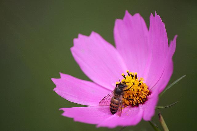 Honey bee on milkweed bee pollination is essential to agriculture. Photo by JG D70s / Flickr (use permitted with attribution/no derivative works).