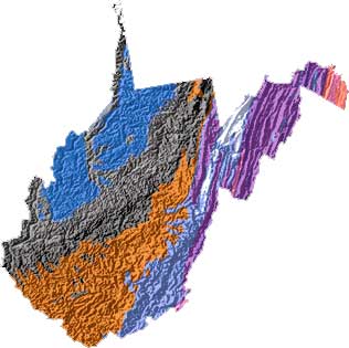 West Virginia geology and topography map courtesy of USGS.