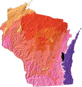 Wisconsin geology and topography map courtesy of USGS: A Tapestry of Time and Terrain.